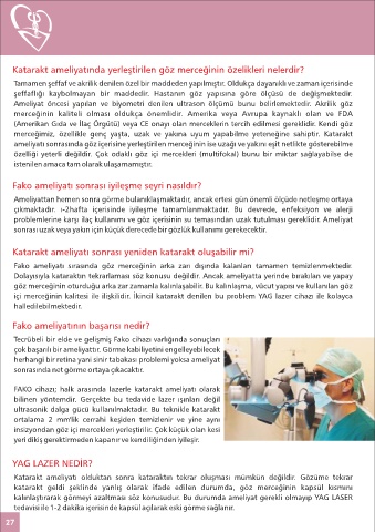içi merceğinin kalitesi ile ilişkilidir. İkincil katarakt denilen bu problem YAG lazer cihazı ile kolayca