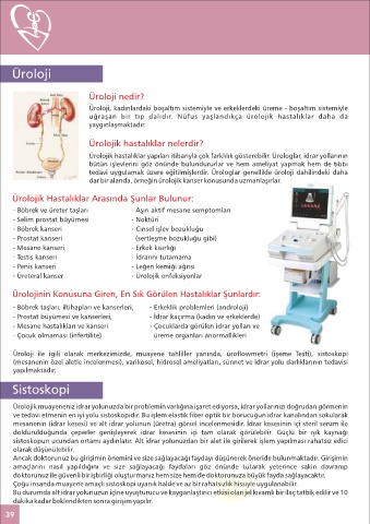 tedavi uygulamak üzere eğitilmişlerdir. Ürologlar genellikle üroloji dahilindeki daha