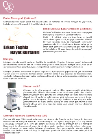 Memesinde sorun tespit edilen her yaştaki kadına ve herhangi bir sorunu olmayan 40 yaş ve üstü