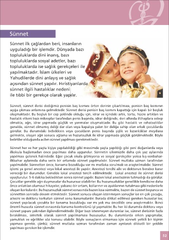 yapılmalıdır. Sünnetten önce, kanama bozukluğu var mı mutlaka sorulmalı ve araştırılmalıdır. Sünnet